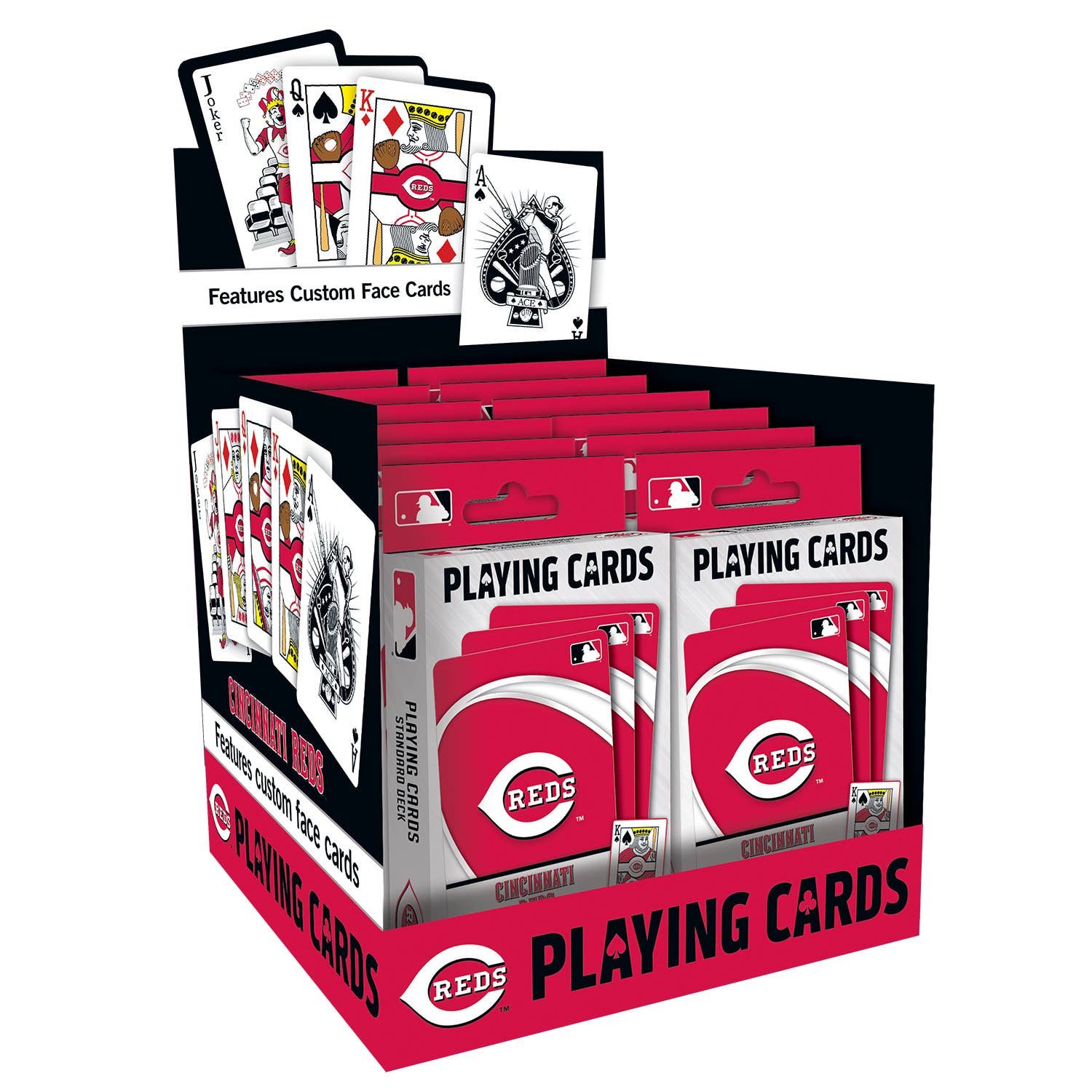 These officially licensed Cincinnati Reds team playing cards are the perfect deck for all MLB fans! Each standard deck contains 52 high quality cardstock playing cards and 2 jokers. Card-back designs feature your favorite team's logo. All face cards and jokers have detailed, custom team designs. Support your favorite MLB Team with officially licensed and approved playing cards. Perfect for all fans!