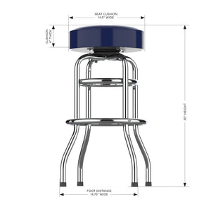 The Officially Licensed Denver Broncos Bar Stool Has The Team Logos Printed On The Underside Of Heavy-Duty, Clear Vinyl To Prevent It From Scratching Off. The Base Is Commercial Quality Chrome Plated Tubular Steel. Seat Measures 3.5-Inches Thick With A 14.5-Inch Diameter And Is 30-Inches High And Has A Two Ring Frame. Match It Up With The Team Pub Table To Complete Your Fan Cave!