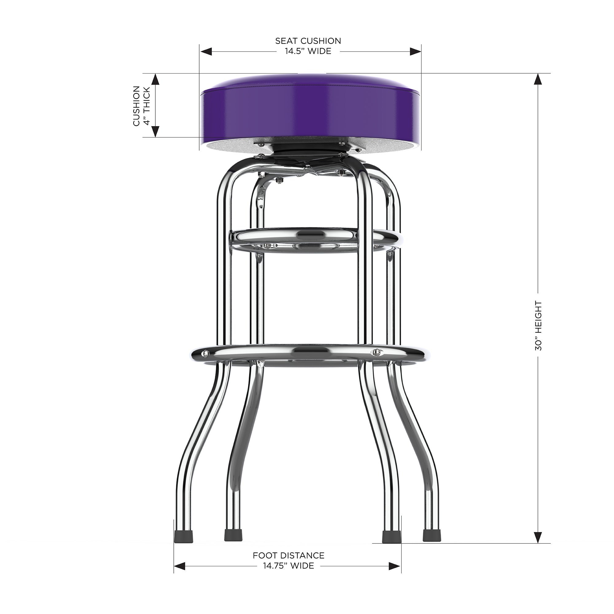 The Officially Licensed Minnesota Vikings Bar Stool Has The Team Logos Printed On The Underside Of Heavy-Duty, Clear Vinyl To Prevent It From Scratching Off. The Base Is Commercial Quality Chrome Plated Tubular Steel. Seat Measures 3.5-Inches Thick With A 14.5-Inch Diameter And Is 30-Inches High And Has A Two Ring Frame. Match It Up With The Team Pub Table To Complete Your Fan Cave!