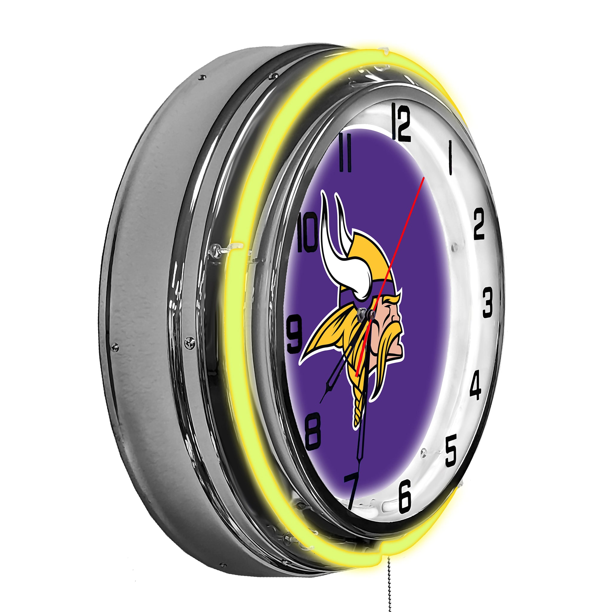 Make Your Fan Room Or Office Glow With Your 18" Minnesota Vikings Neon Clock. The inner Band Of Neon Is White To Brighten The Face Of The Clock And the Outer Band Focuses On Your Favorite Teams Color. Perfect Gift For That Distinguished Fan!