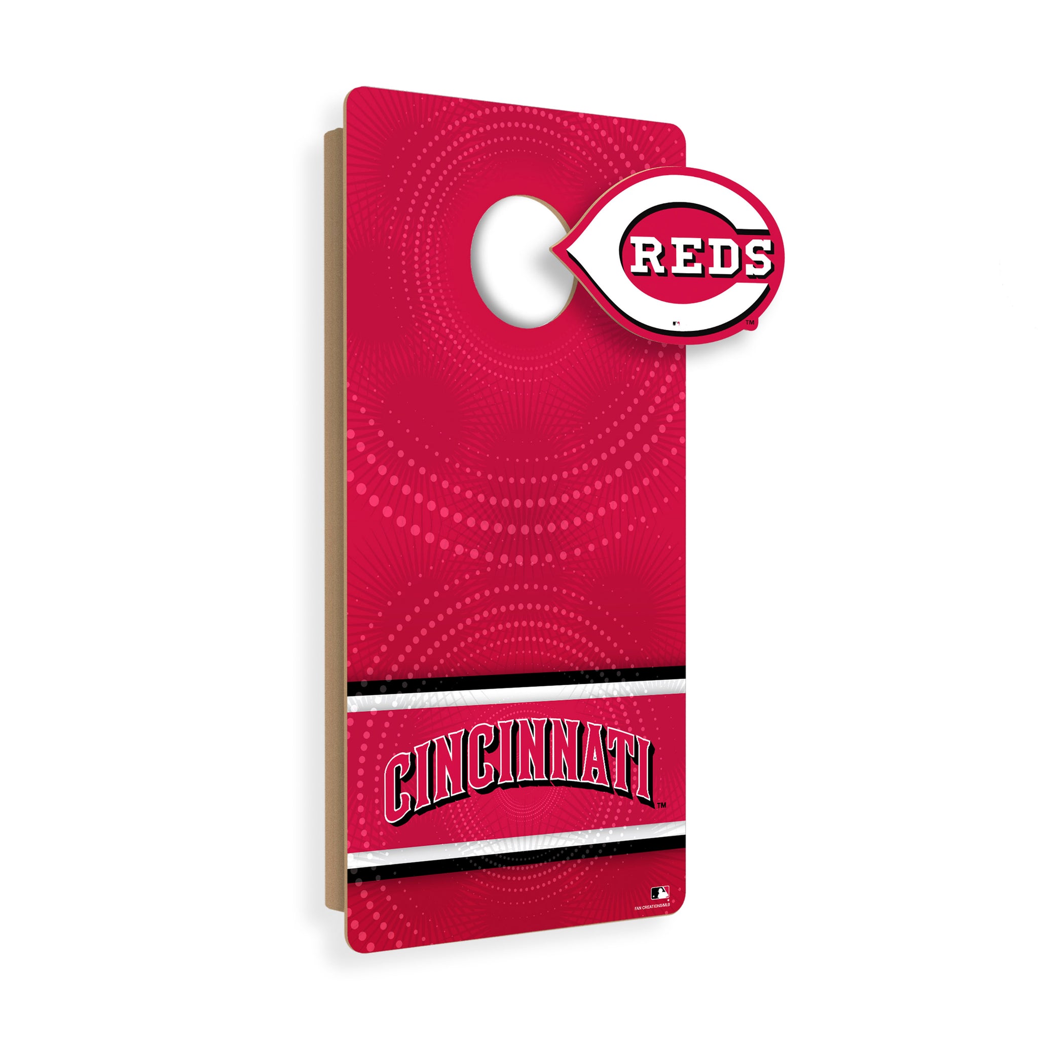 Show off your team spirit with this Cincinnati Reds team-themed half-size cornhole board, designed to be the perfect blend of functionality and fan flair. Crafted for both play and display, this board features a stunning 3D cutout team logo that fits into the hole, transforming your cornhole set into a unique wall art piece when not in use. The board also comes with 6 bean bags that conveniently store in a pocket behind the board when it’s hanging on the wall, making it a space-saving solution for your home.