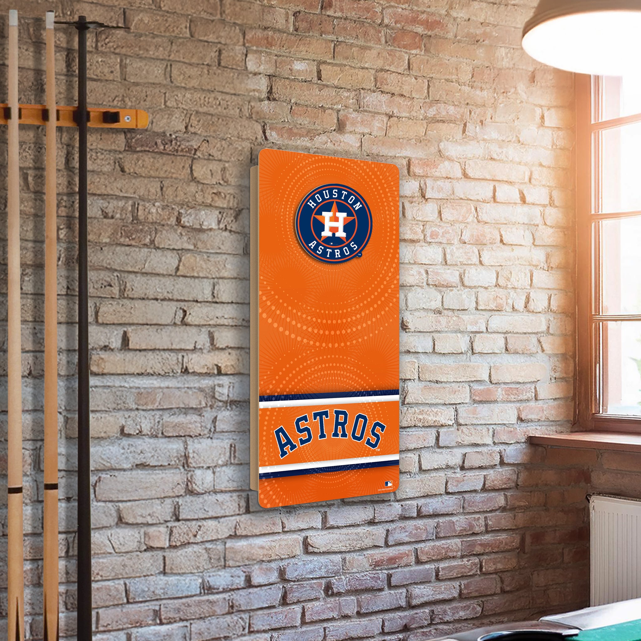 Show off your team spirit with this Houston Astros team-themed half-size cornhole board, designed to be the perfect blend of functionality and fan flair. Crafted for both play and display, this board features a stunning 3D cutout team logo that fits into the hole, transforming your cornhole set into a unique wall art piece when not in use. The board also comes with 6 bean bags that conveniently store in a pocket behind the board when it’s hanging on the wall, making it a space-saving solution for your home.