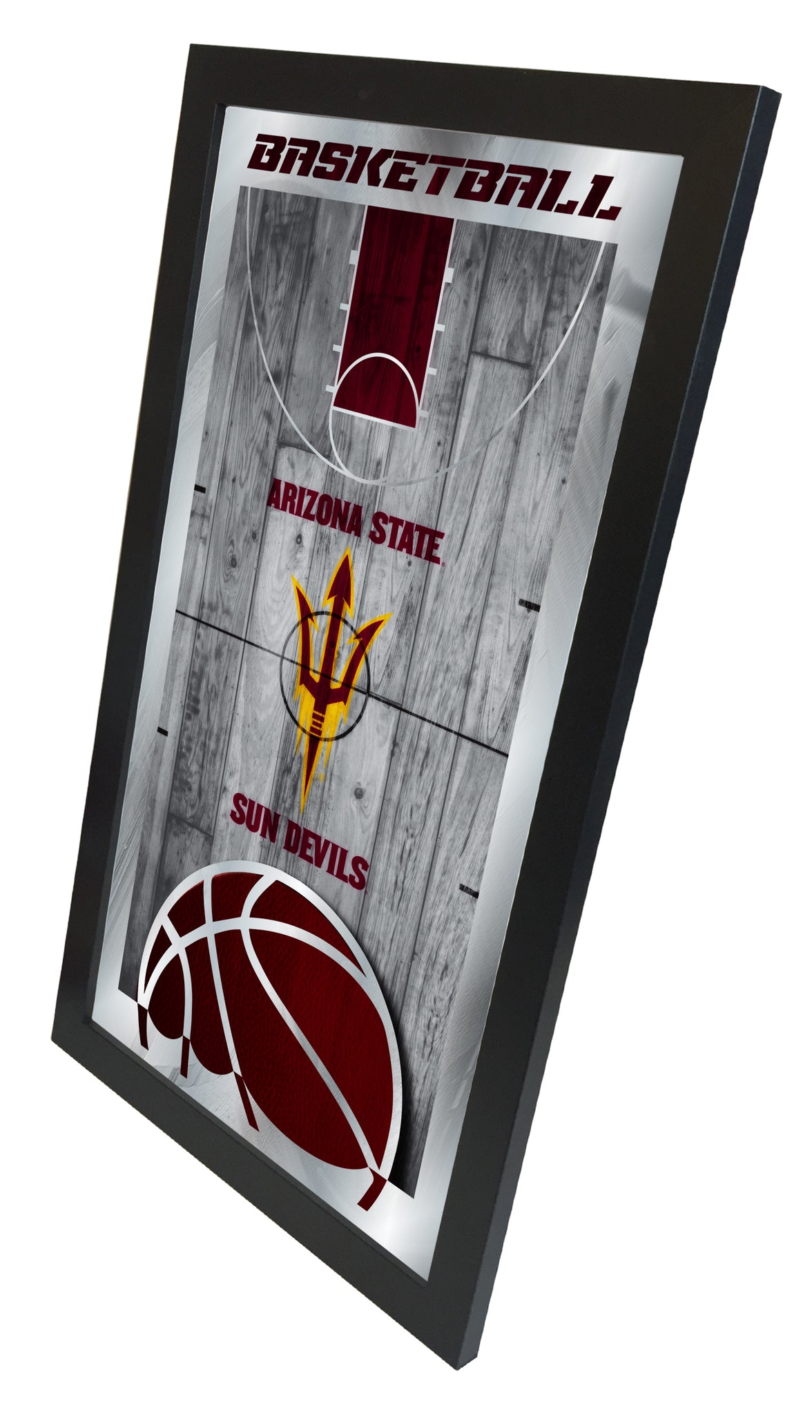 Show your school pride with this Official Licensed Basketball Mirror from the Holland Bar Stool Co.   With it's simple but elegant design, colors burst through the 1/8" thick glass and are highlighted by the mirrored accents.  Framed with a black, 1 1/4 wrapped wood frame with saw tooth hangers, this 15"(H) x 26"(W) mirror is ideal for your office, garage, or any room of the house.  Whether purchasing as a gift for a recent grad, sports super fan, or for yourself, you can take satisfaction knowing you're buying a mirror that is proudly Made in the USA.