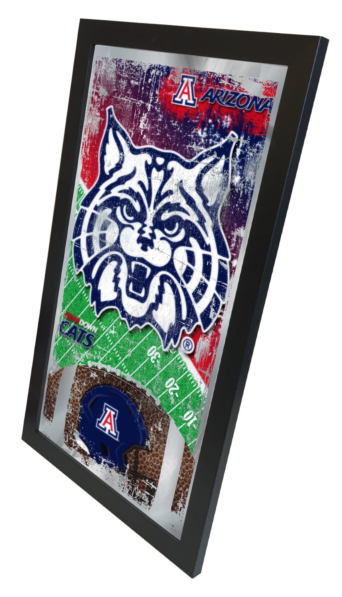 Show your school pride with this Official Licensed Football Mirror from the Holland Bar Stool Co.   With it's simple but elegant design, colors burst through the 1/8" thick glass and are highlighted by the mirrored accents.  Framed with a black, 1 1/4 wrapped wood frame with saw tooth hangers, this 15"(H) x 26"(W) mirror is ideal for your office, garage, or any room of the house.  Whether purchasing as a gift for a recent grad, sports super fan, or for yourself, you can take satisfaction knowing you're buying a mirror that is proudly Made in the USA.