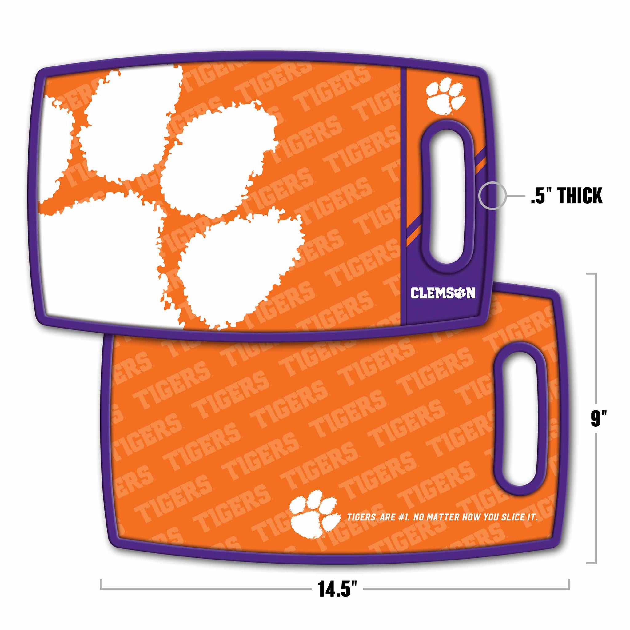 Cheer on your college team with the College Logo Series Cutting Board. Decked out in your favorite teams’ logos and colors, this cutting board is the perfect gift for any fan. The 14” x 9” surface is ideal for cutting and gentle on knives. Plus, your team is featured on both sides— double the surface, double the memories!
