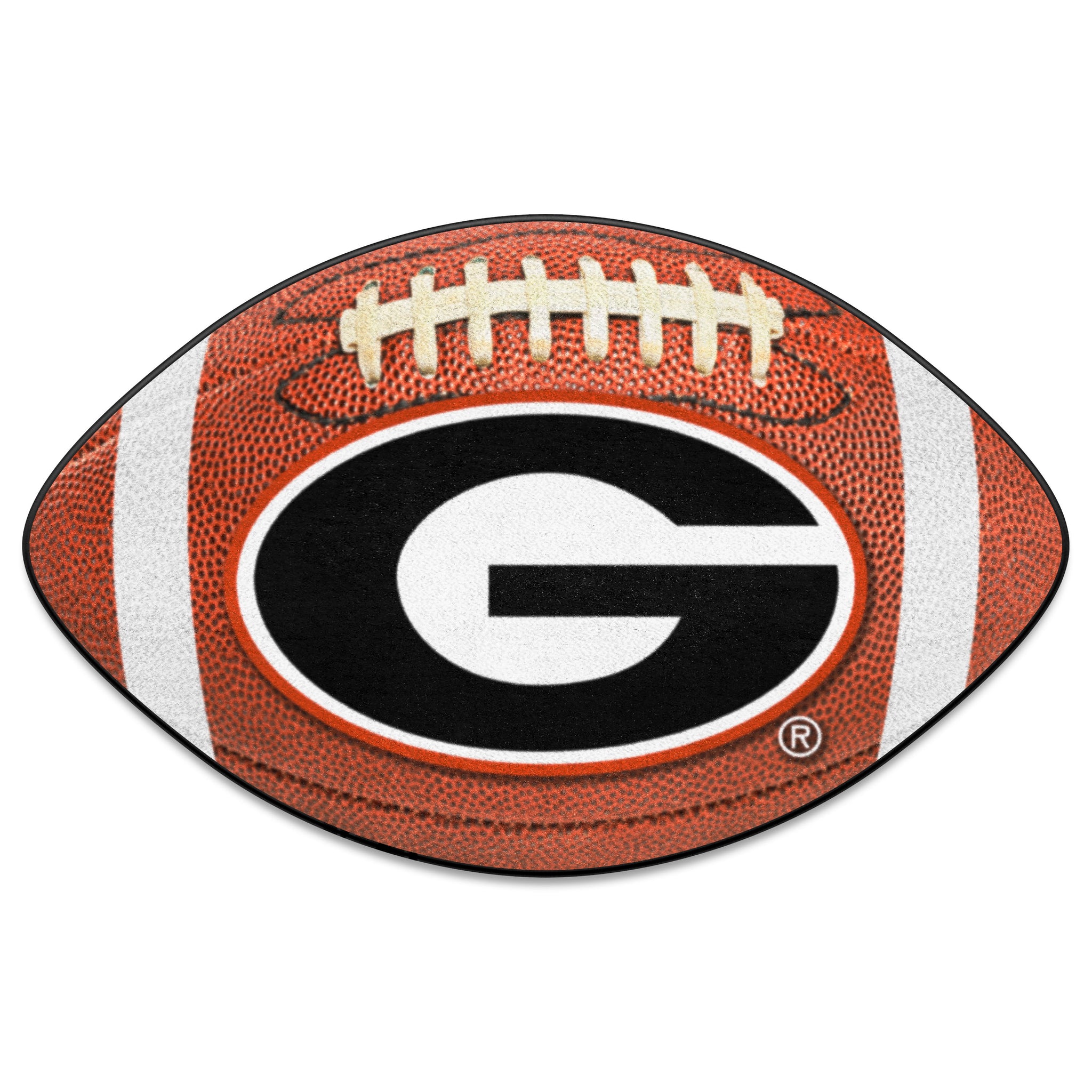 Protect your floor in style and show off your fandom with Georgia Bulldogs football shaped mats . These mats feature a photorealistic football design and a true-team colored logo. Great for basements, man caves, offices, kids rooms and more!