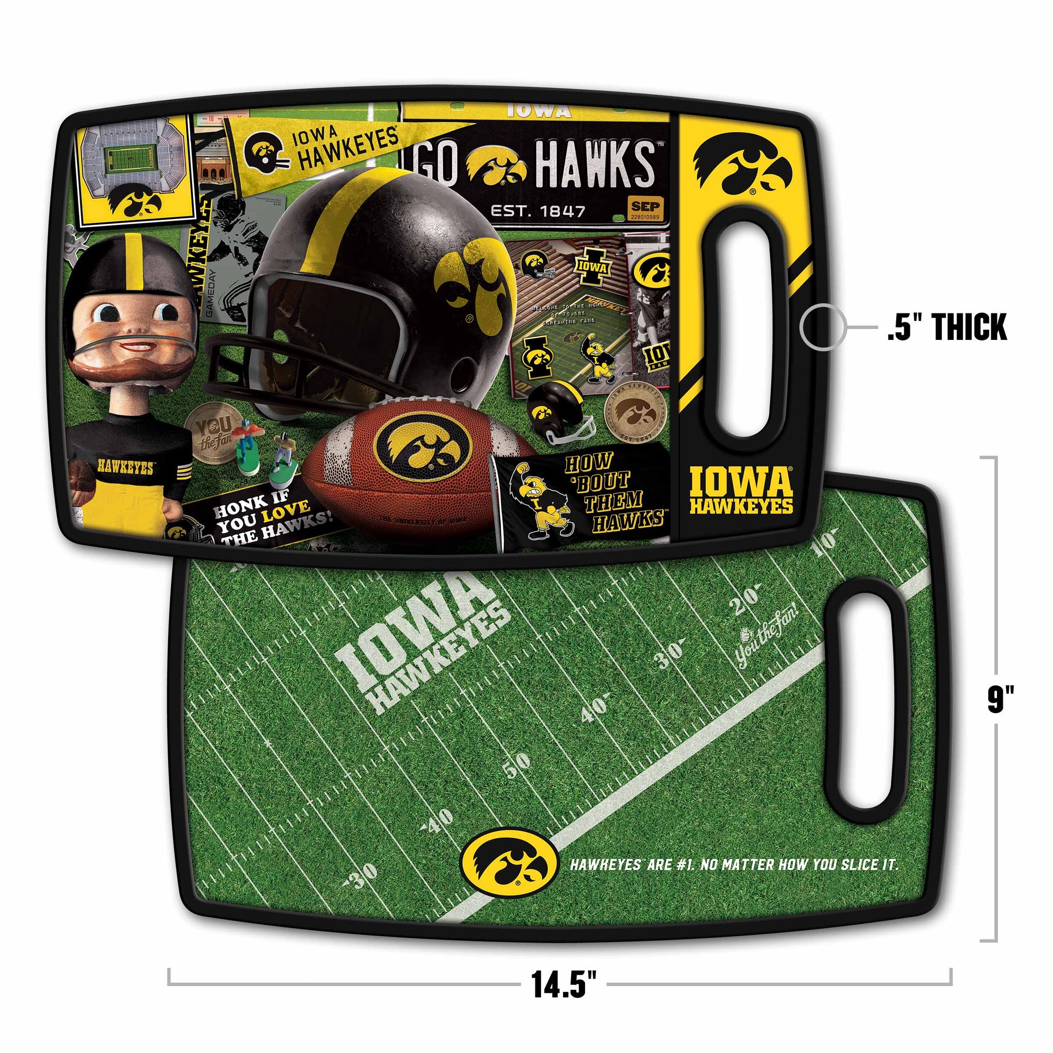 Look back on your favorite team through the years with this retro series cutting board. Filled with memorabilia, vintage programs, bobbleheads and classic collectibles, each cutting board is designed to feature your team’s unique slogans and stadiums. The 14.5 in. x 9 in. surface is ideal for cutting and gentle on knives. Plus, your team is featured on both sides - double the surface, double the memories.