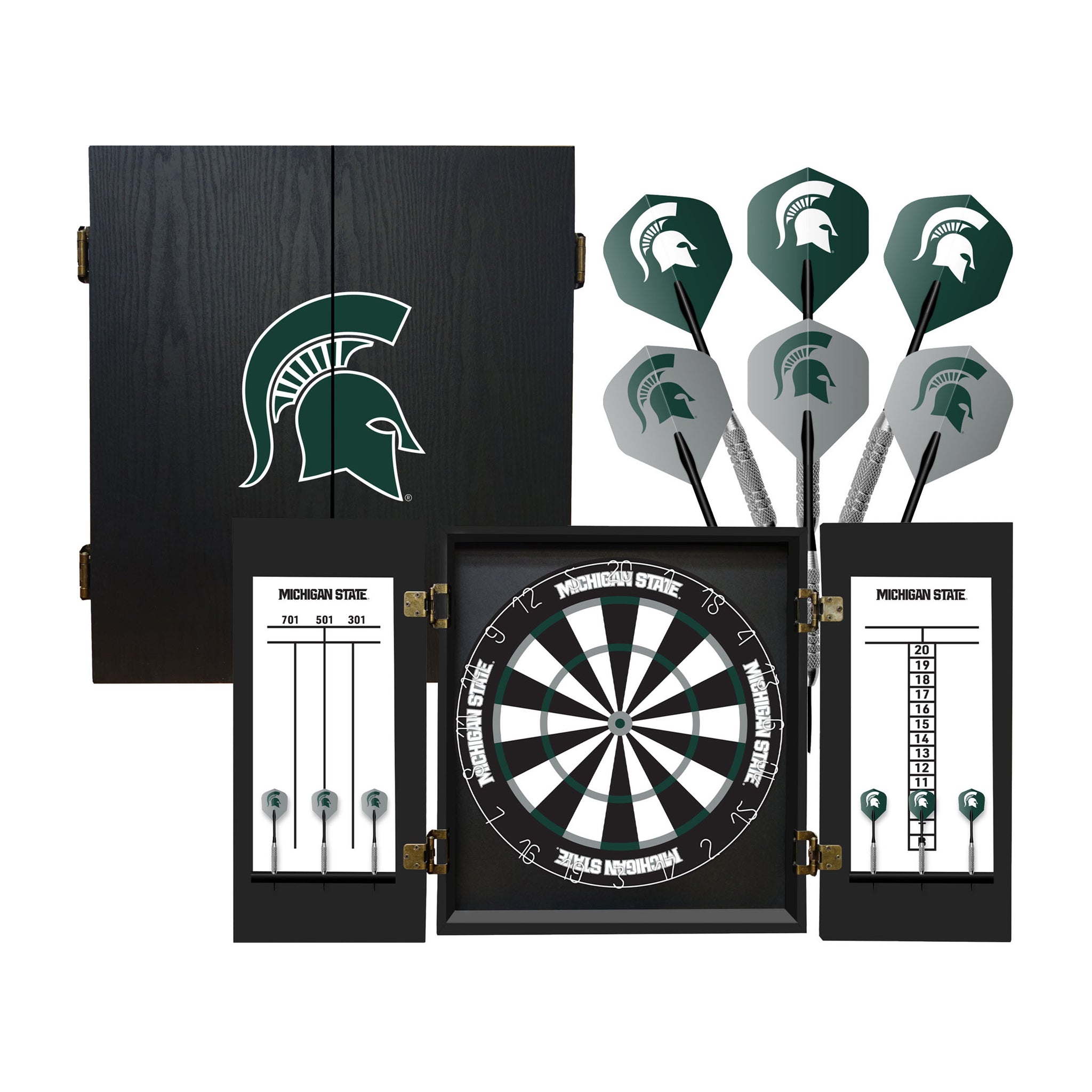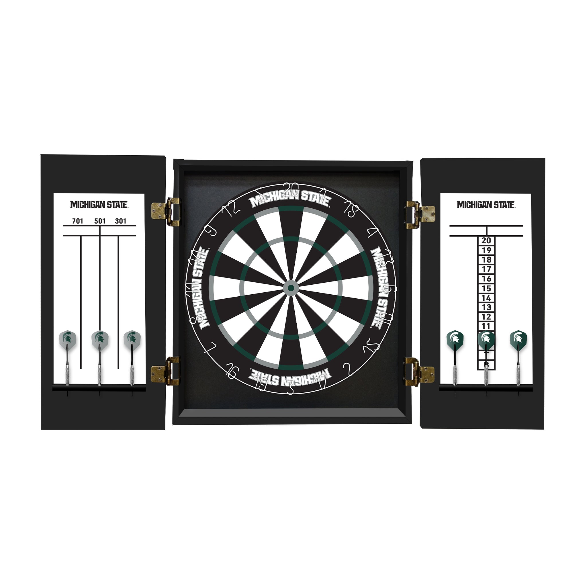 The Fan's Choice Michigan State Spartans Bristle Dartboard Cabinet Features Your Favorite Team Logo And Includes A Premium 18 Inch Tournament Sized Self Healing Bristle Dartboard. Self Healing Bristle Dartboards Are Some Of The Longest Lasting Boards On The Market, Since The Holes Close Up After Each Dart Is Removed. This Hanging Dartboard Cabinet Will Look Great In Your Fan Cave Or Any Room That Your Family And Friends Gather. It's Easy To Assemble; The Cabinet Comes Preassembled And Ready To Hang On The Wall. Secure The Dartboard And You Are Ready To Have Hours Of Enjoyment!