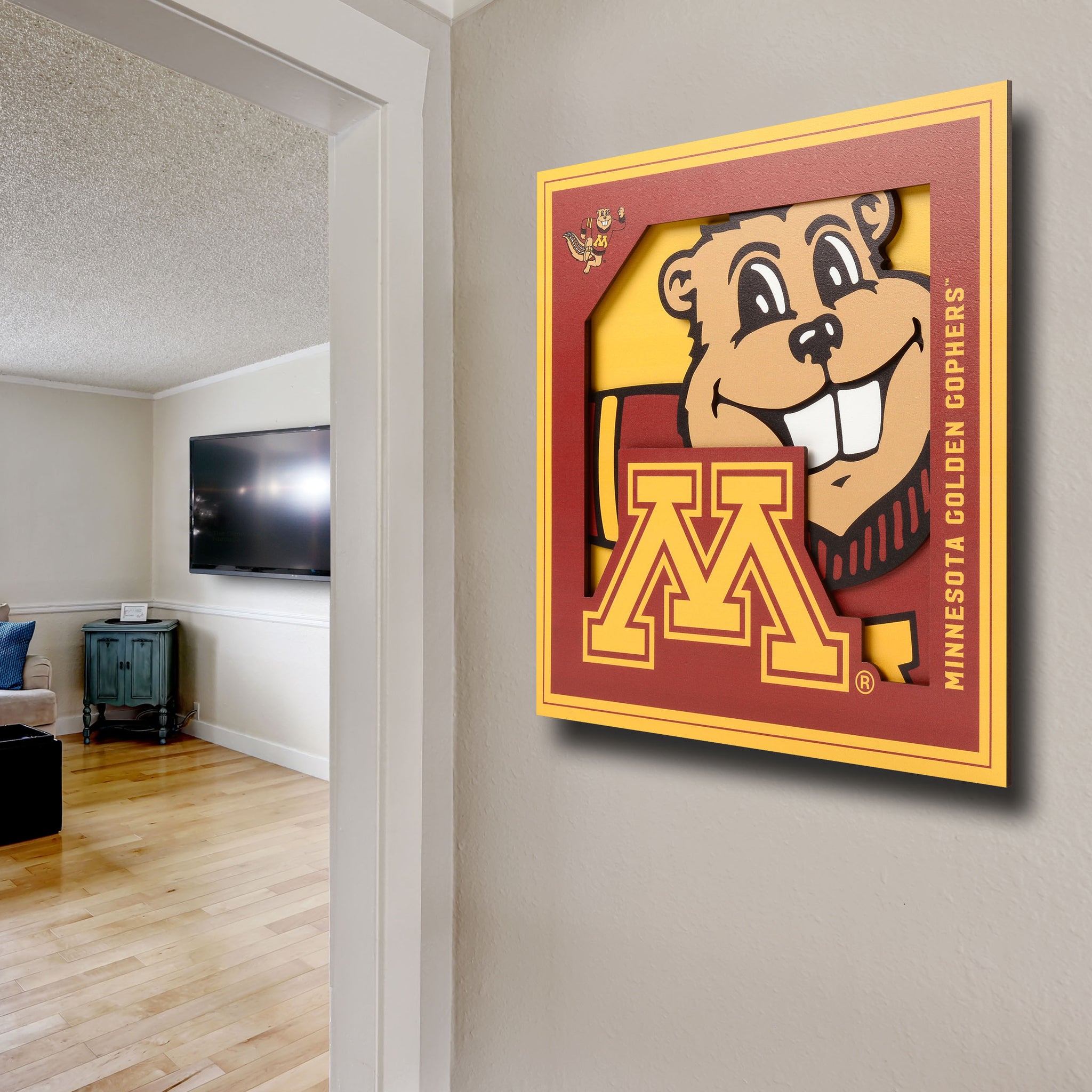 Minnesota Golden Gophers 3D Logo Series Wall Art - 12"x12"