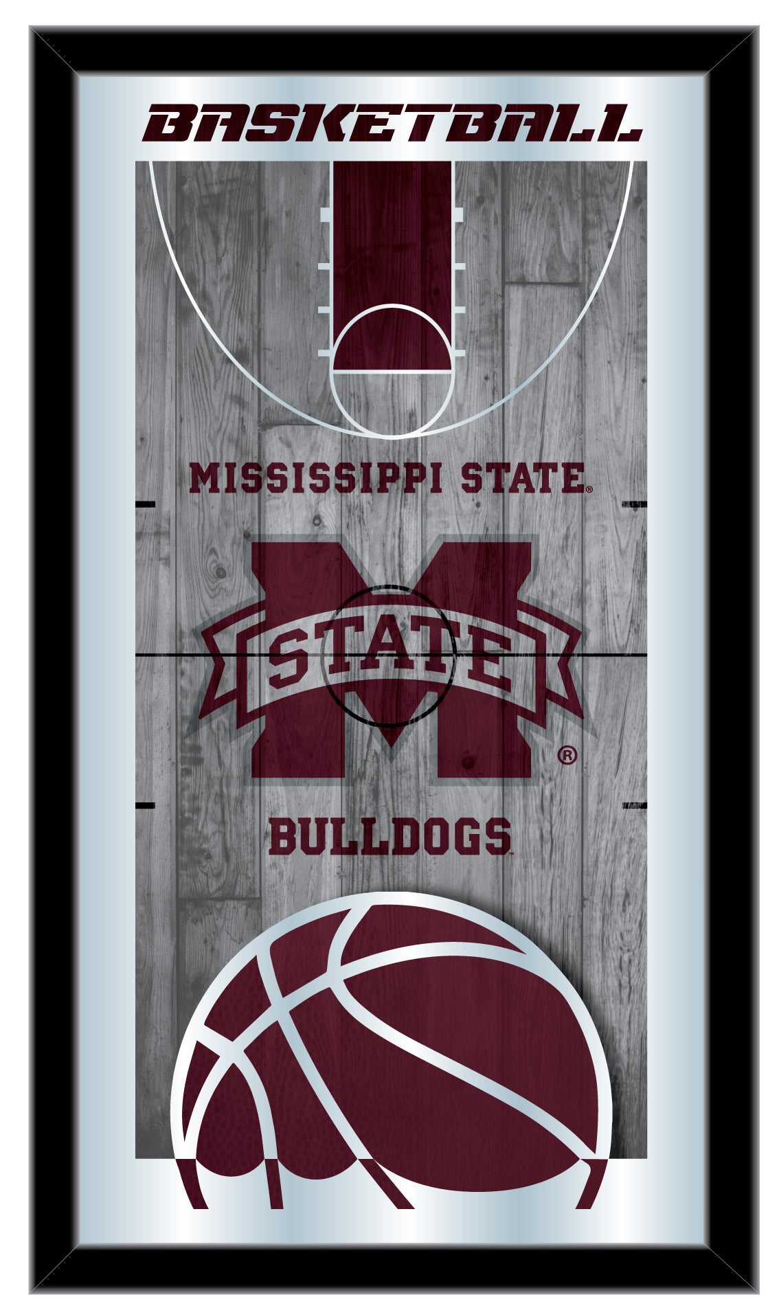 Show your school pride with this Official Licensed Basketball Mirror from the Holland Bar Stool Co.   With it's simple but elegant design, colors burst through the 1/8" thick glass and are highlighted by the mirrored accents.  Framed with a black, 1 1/4 wrapped wood frame with saw tooth hangers, this 15"(H) x 26"(W) mirror is ideal for your office, garage, or any room of the house.  Whether purchasing as a gift for a recent grad, sports super fan, or for yourself, you can take satisfaction knowing you're buying a mirror that is proudly Made in the USA.
