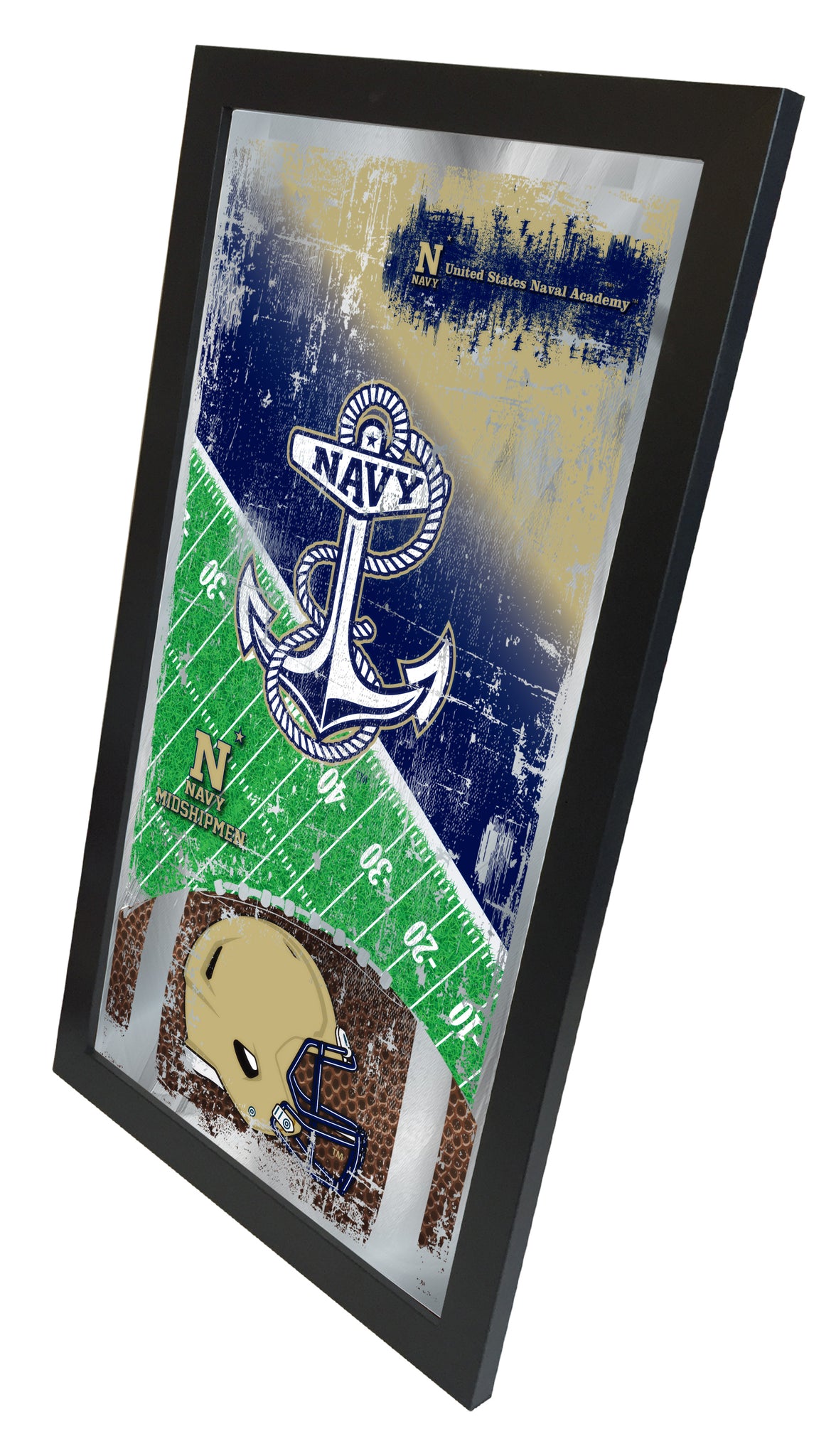 Show your school pride with this Official Licensed Football Mirror from the Holland Bar Stool Co.   With it's simple but elegant design, colors burst through the 1/8" thick glass and are highlighted by the mirrored accents.  Framed with a black, 1 1/4 wrapped wood frame with saw tooth hangers, this 15"(H) x 26"(W) mirror is ideal for your office, garage, or any room of the house.  Whether purchasing as a gift for a recent grad, sports super fan, or for yourself, you can take satisfaction knowing you're buying a mirror that is proudly Made in the USA.