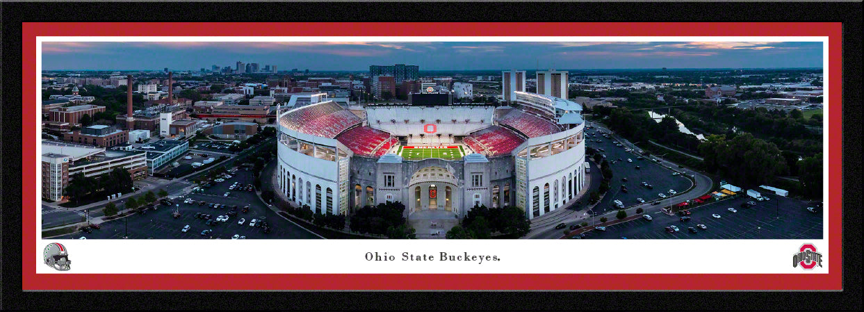 The aerial photo captures the Ohio Stadium on the eve of the first regular season game of their 100th season of football. Affectionately known as the "Shoe", Ohio Stadium is one of the most recognizable landmarks in all of the sports. Since the opening game against Ohio Wesleyan on October 7, 1922, more than 36 million fans have streamed through the stadium's gates. With a seating capacity of 102,780, Ohio Stadium is one of the largest stadiums in the world, the fourth largest on-campus facility in the nation, and is listed in the National Register of Historic Places.