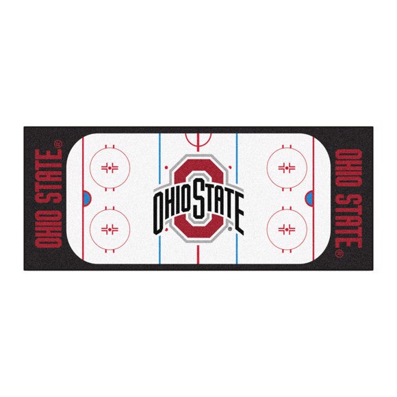 Support your alma mater with an officially licensed hockey rink-shaped Ohio State Buckeyes hockey rink runner. Made in the USA with 100% nylon carpet and non-skid recycled vinyl backing. Machine washable; vacuum regularly and spot clean for any easy and quick clean. Chromojet printed in true team colors with 100% nylon carpet and non-skid recycled vinyl backing.