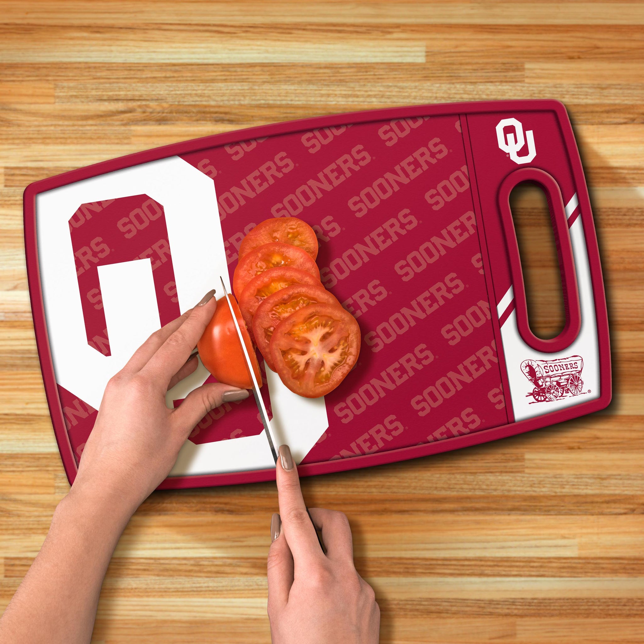 Cheer on your college team with the College Logo Series Cutting Board. Decked out in your favorite teams’ logos and colors, this cutting board is the perfect gift for any fan. The 14” x 9” surface is ideal for cutting and gentle on knives. Plus, your team is featured on both sides— double the surface, double the memories!