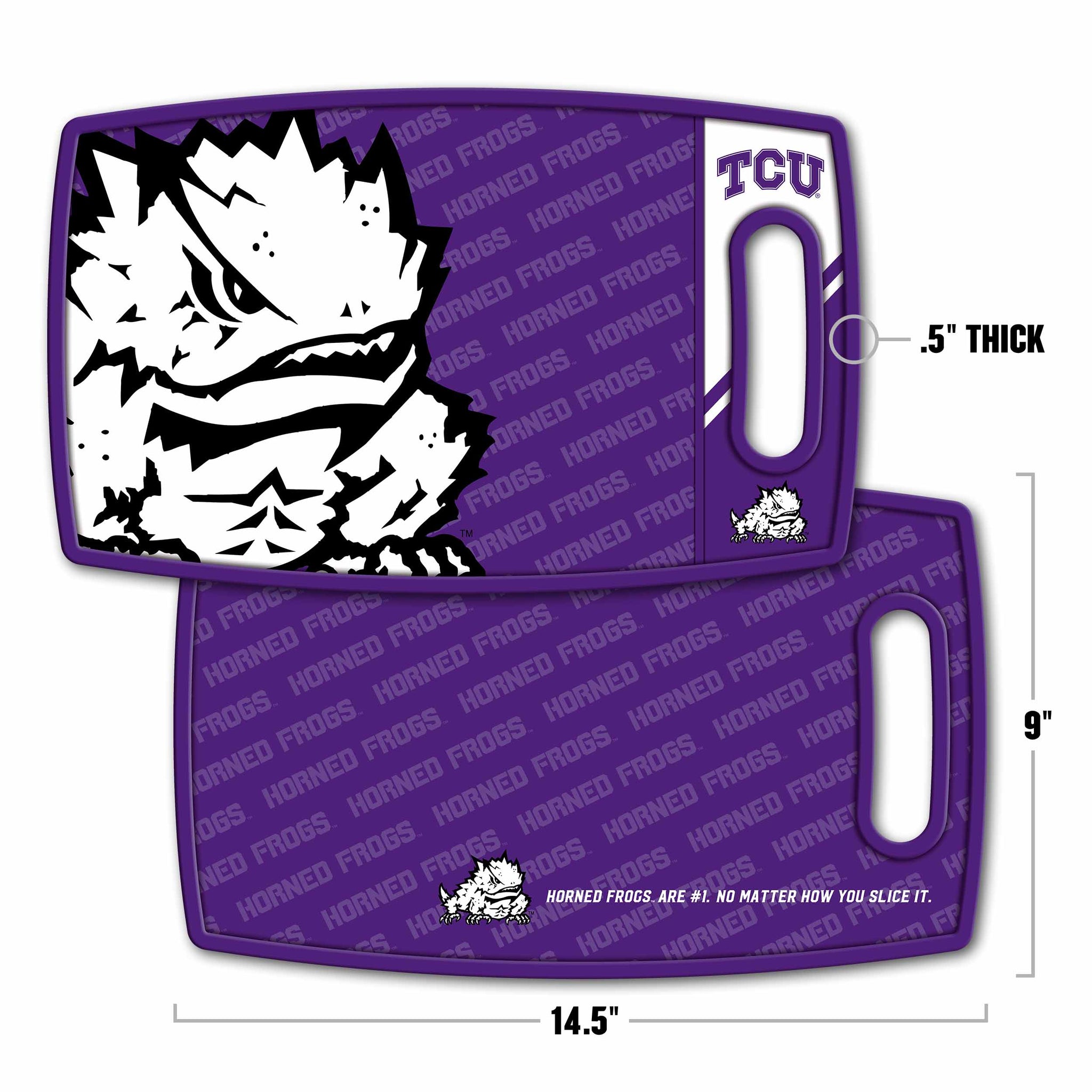 Cheer on your college team with the College Logo Series Cutting Board. Decked out in your favorite teams’ logos and colors, this cutting board is the perfect gift for any fan. The 14” x 9” surface is ideal for cutting and gentle on knives. Plus, your team is featured on both sides— double the surface, double the memories!