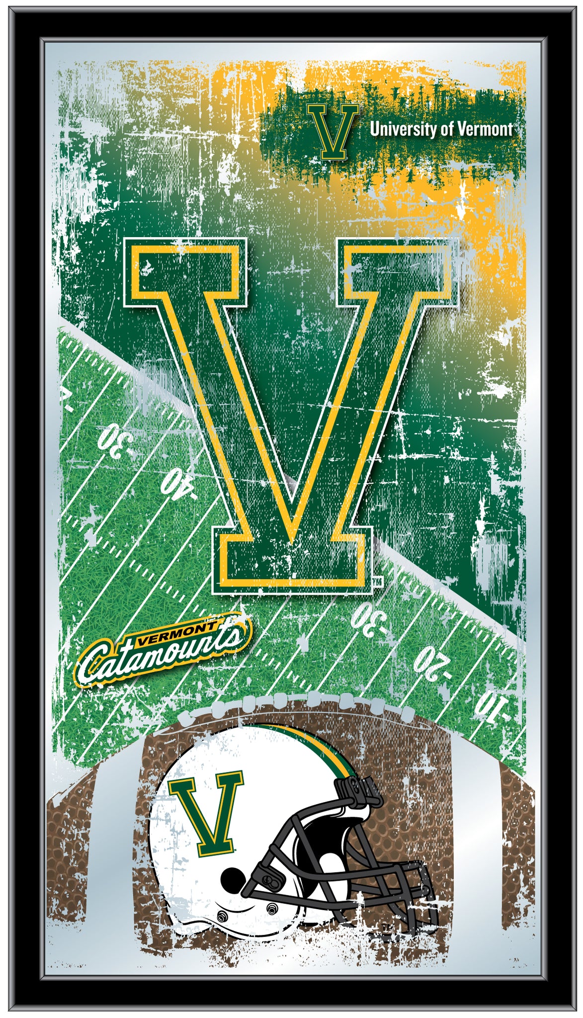 Show your school pride with this Official Licensed Football Mirror from the Holland Bar Stool Co.   With it's simple but elegant design, colors burst through the 1/8" thick glass and are highlighted by the mirrored accents.  Framed with a black, 1 1/4 wrapped wood frame with saw tooth hangers, this 15"(H) x 26"(W) mirror is ideal for your office, garage, or any room of the house.  Whether purchasing as a gift for a recent grad, sports super fan, or for yourself, you can take satisfaction knowing you're buying a mirror that is proudly Made in the USA.