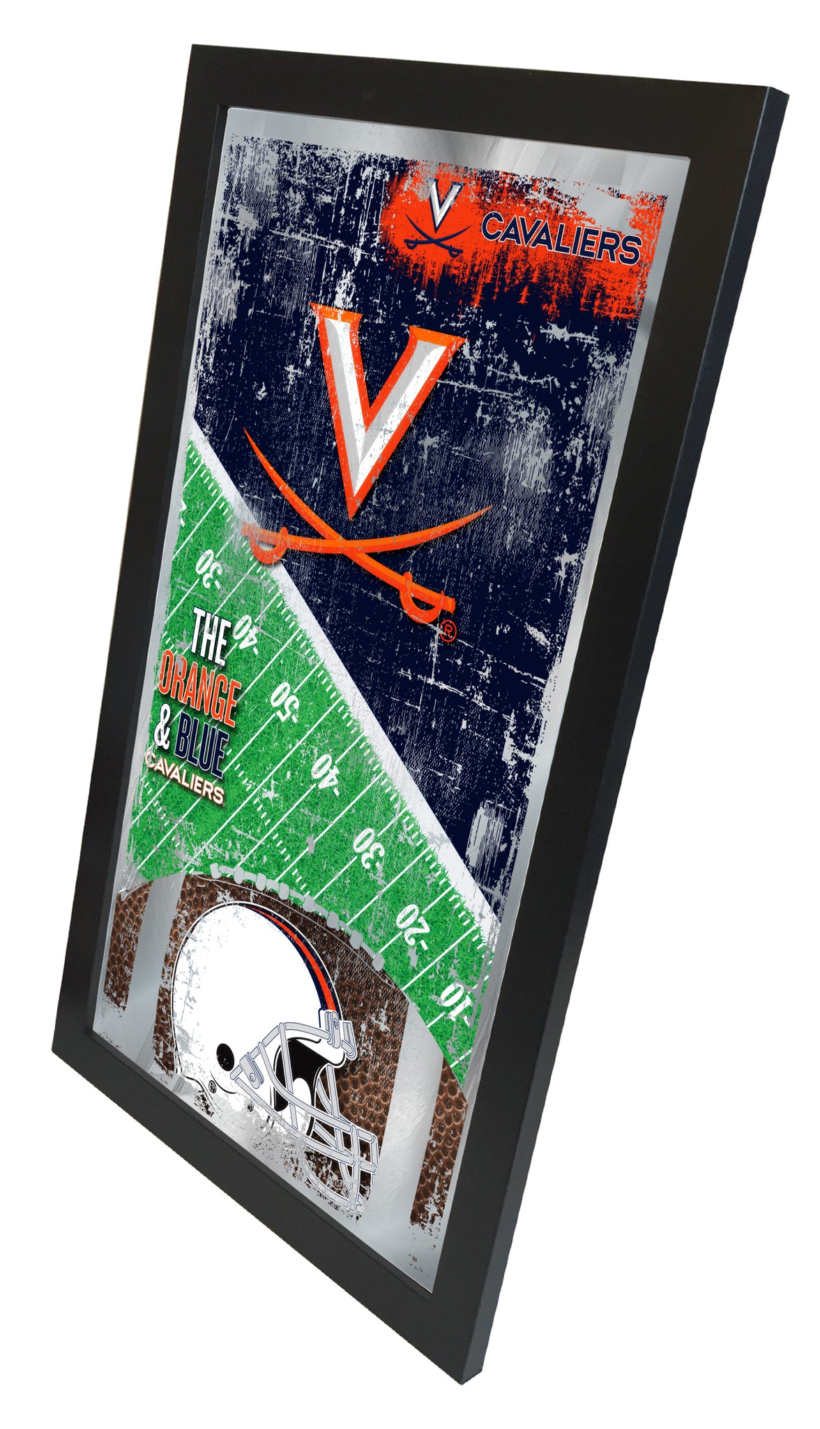 Show your school pride with this Official Licensed Football Mirror from the Holland Bar Stool Co.   With it's simple but elegant design, colors burst through the 1/8" thick glass and are highlighted by the mirrored accents.  Framed with a black, 1 1/4 wrapped wood frame with saw tooth hangers, this 15"(H) x 26"(W) mirror is ideal for your office, garage, or any room of the house.  Whether purchasing as a gift for a recent grad, sports super fan, or for yourself, you can take satisfaction knowing you're buying a mirror that is proudly Made in the USA.