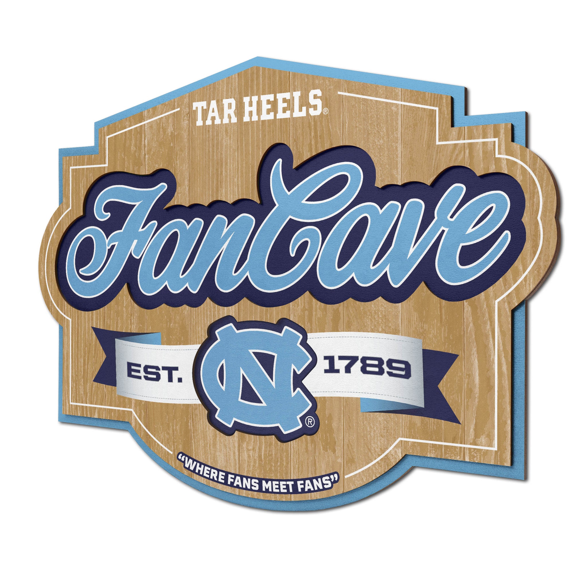 North Carolina Tar Heels 3D Fan Cave Wood Sign