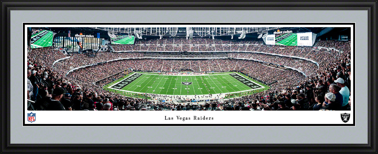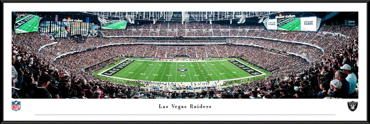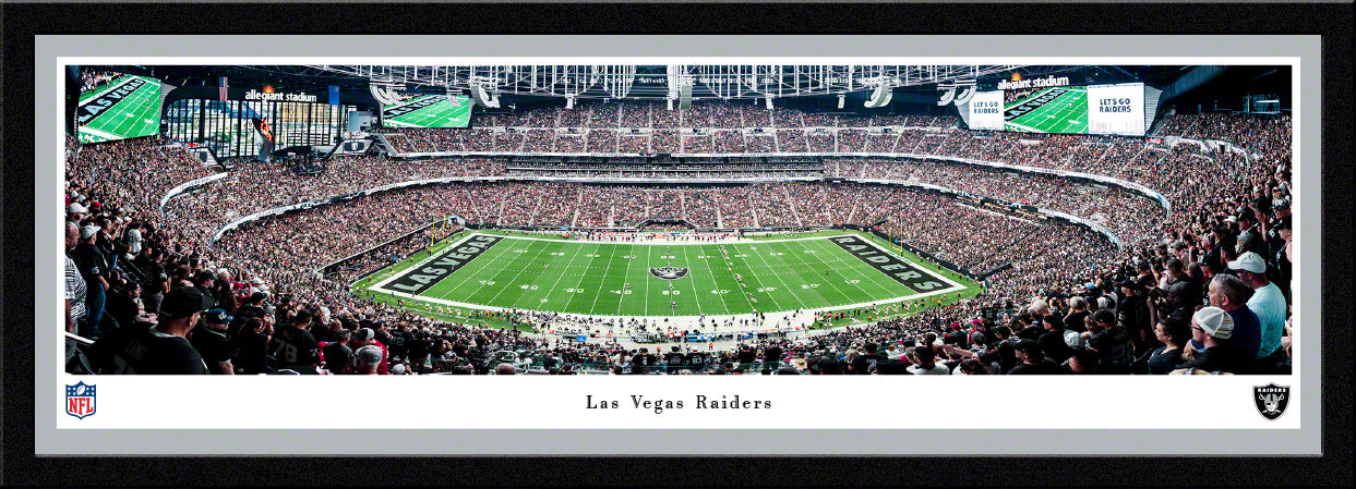 This panoramic photo captures the opening kickoff of a Las Vegas Raider game at Allegiant Stadium. The Raiders have called Allegiant Stadium their home turf since moving to Las Vegas in 2020. Through the windows in the end zone you can see several casinos on the Las Vegas Strip. It was a hard-fought game but in the end the Cardinals edged out the Raiders 29-23 in overtime.