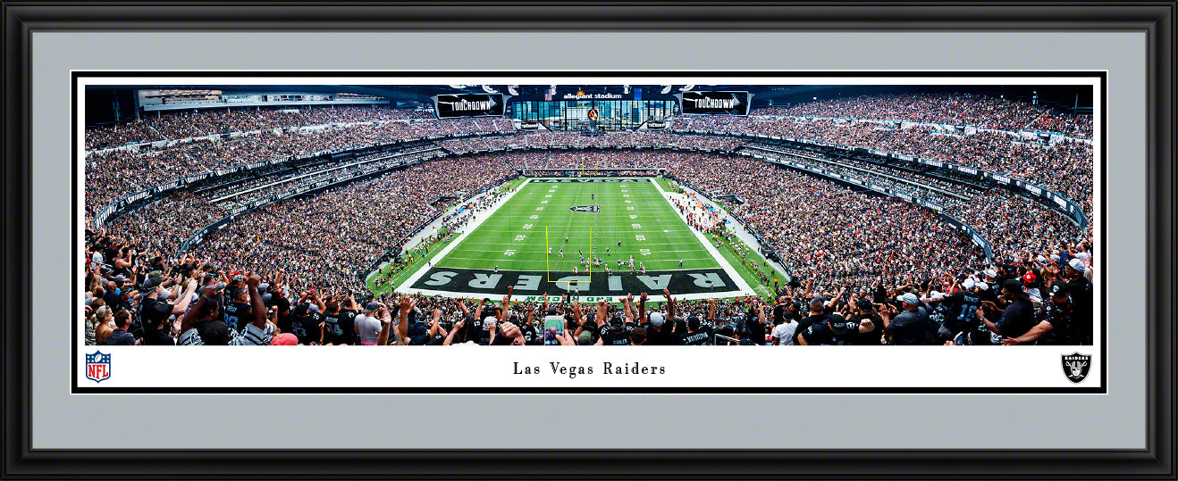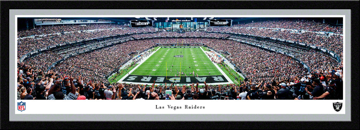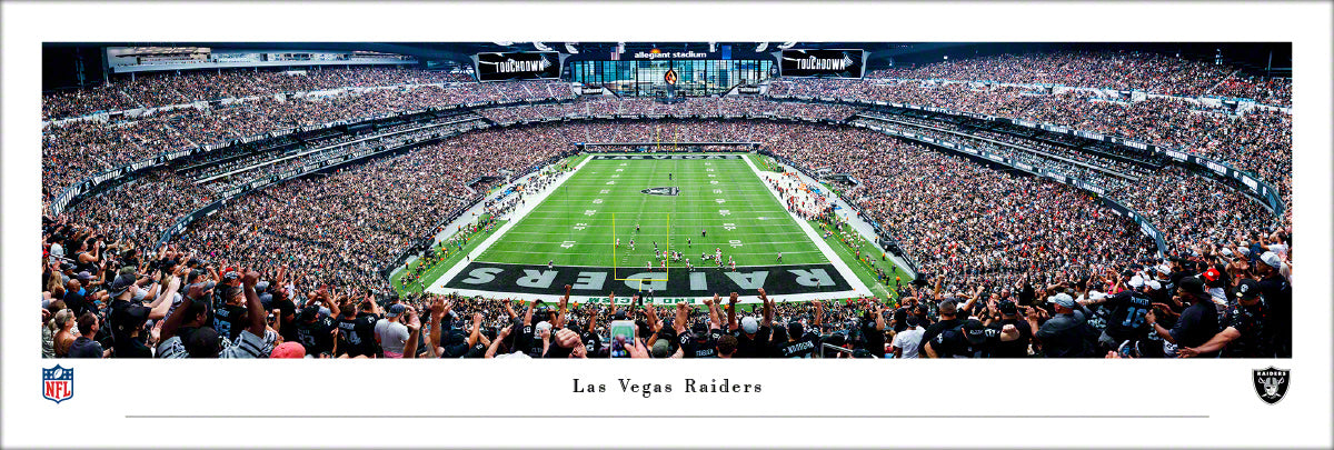 This panoramic photo captures the opening kickoff of a Las Vegas Raider game at Allegiant Stadium. The Raiders have called Allegiant Stadium their home turf since moving to Las Vegas in 2020. Through the windows in the end zone you can see several casinos on the Las Vegas Strip. It was a hard-fought game but in the end the Cardinals edged out the Raiders 29-23 in overtime.