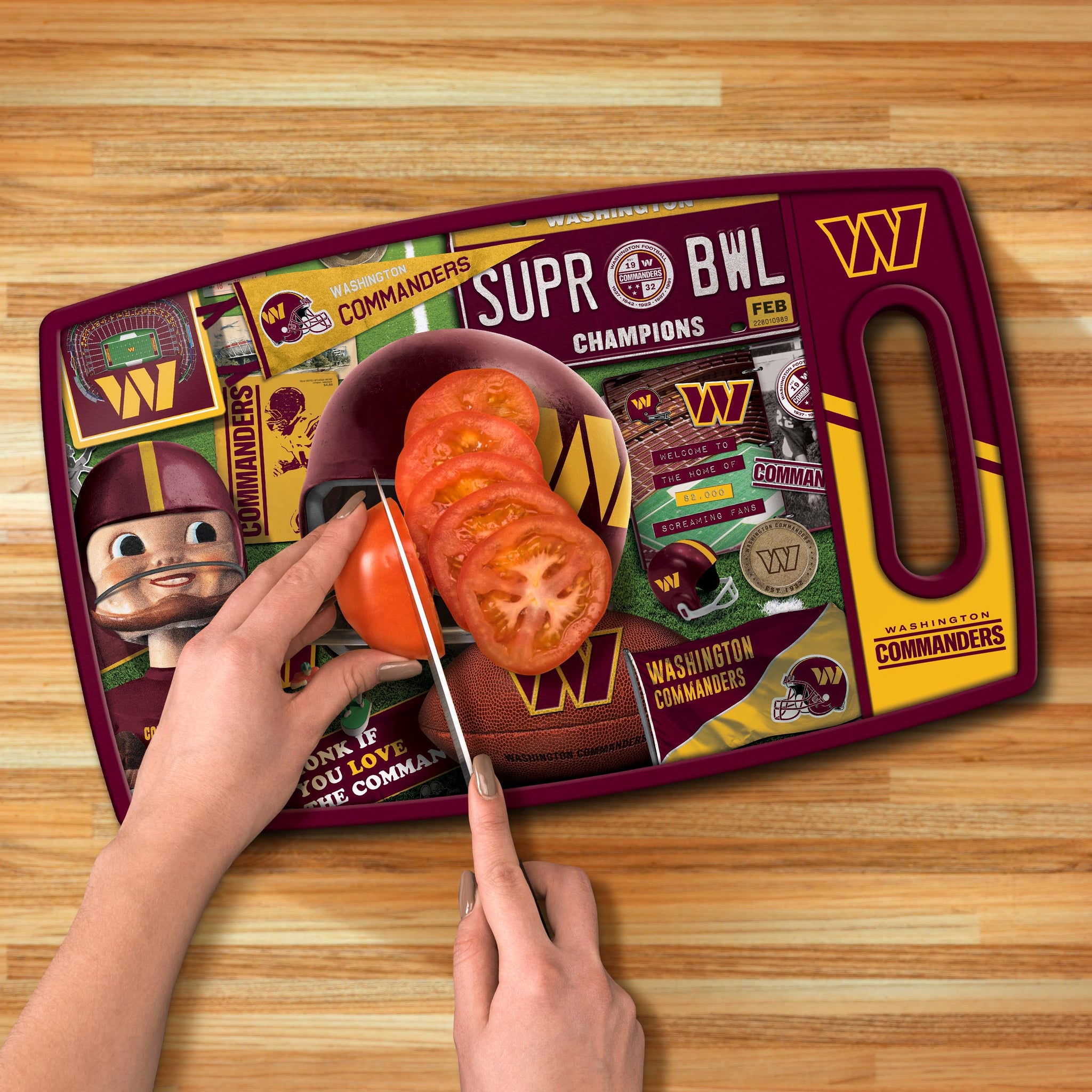 Look back on your favorite team through the years with this retro series cutting board. Filled with memorabilia, vintage programs, bobbleheads and classic collectibles, each cutting board is designed to feature your team’s unique slogans and stadiums. The 14.5 in. x 9 in. surface is ideal for cutting and gentle on knives. Plus, your team is featured on both sides - double the surface, double the memories.