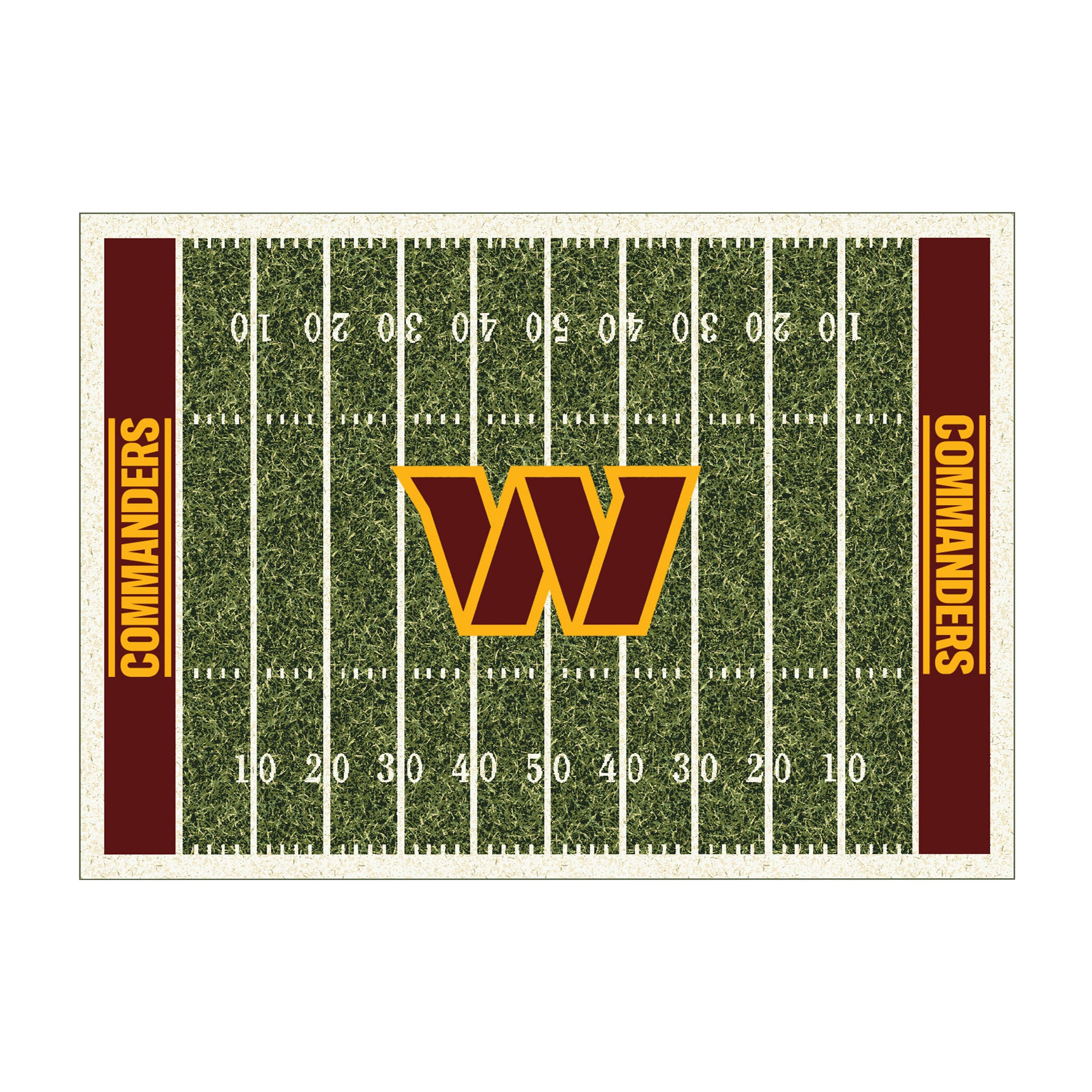 Show Your Team Spirit With This 6X 8' Officially Licensed Washington Commanders Area Rug, Styled To Resemble A Football Field! Made With Premium WearOn®Nylon Fiber, This Rug Is Fade-resistant, Durable, And Easy To Care For. Endura-Loc™ High-Performance Backing Helps Assure The Rug Always Lies Flat And Serged Edges Give Your Rug The Quality Your Home And Team Deserve. The Rug Has A 2-Year Warranty That Protects Against Manufacturer's Defects. Product Made In The USA.